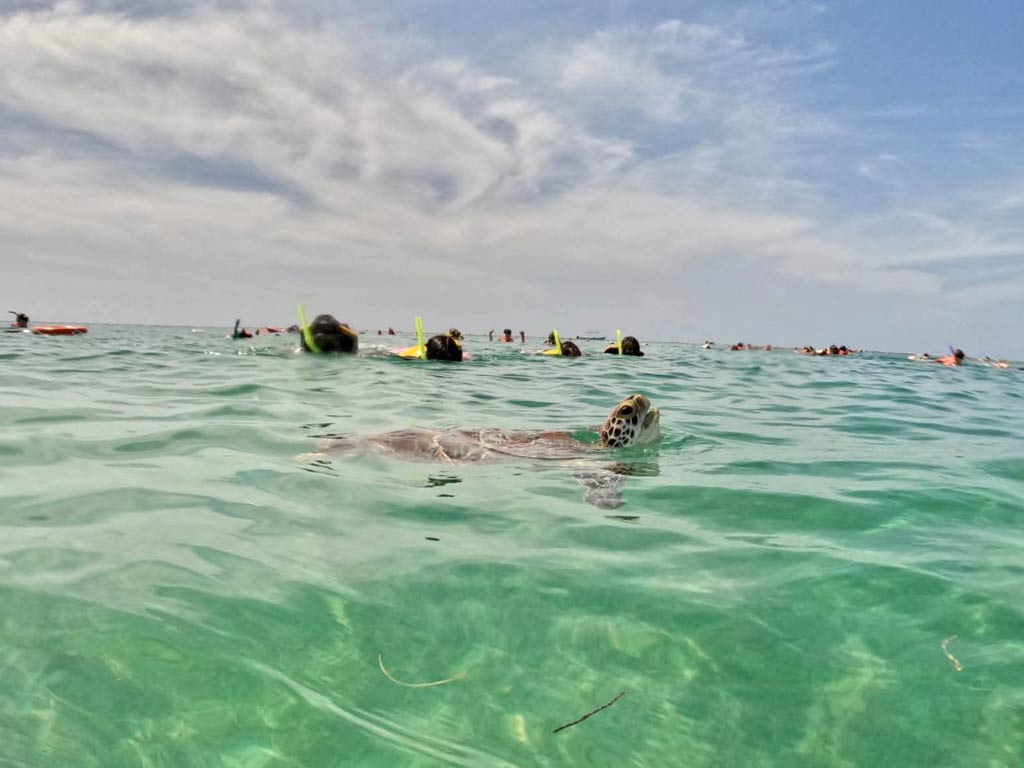 Then we head to Akumal, meaning “place of turtles” in Mayan. This natural sanctuary is home to free-roaming sea turtles. On Akumal’s beautiful beach, you’ll go snorkeling with a guide and may spot manta rays and colorful tropical fish. No advanced swimming skills are needed, and the experience is suitable for all ages.