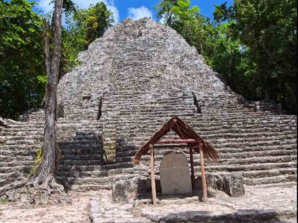 Its main attraction is Nohoch Mul, the tallest pyramid in Yucatán, standing at 42 meters high. Other notable structures include the Coba Group, two Ball Courts, various Stelae, and the ancient Sacbé, or “white road,” used by the Maya for trade and communication.