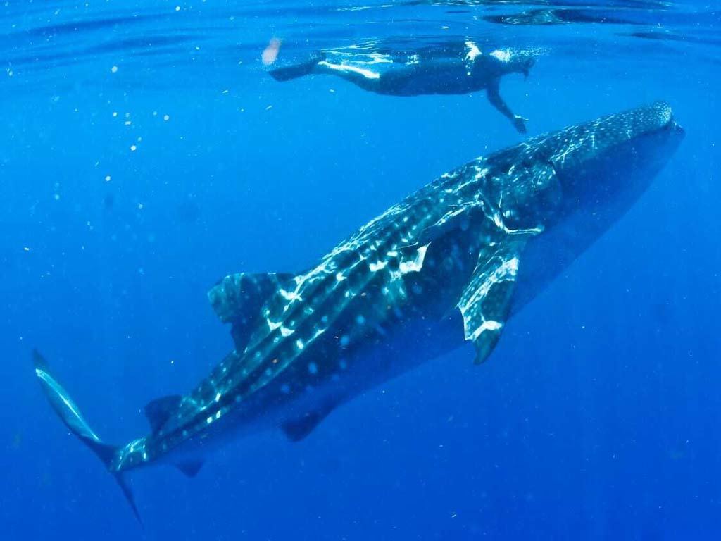 After about 50 minutes by speedboat, we’ll reach the whale shark area. Once there, you’ll snorkel with whale sharks and manta rays for approximately 3 hours. Our guides will be with you at all times, providing information to ensure you enjoy the experience without disturbing these gentle giants.